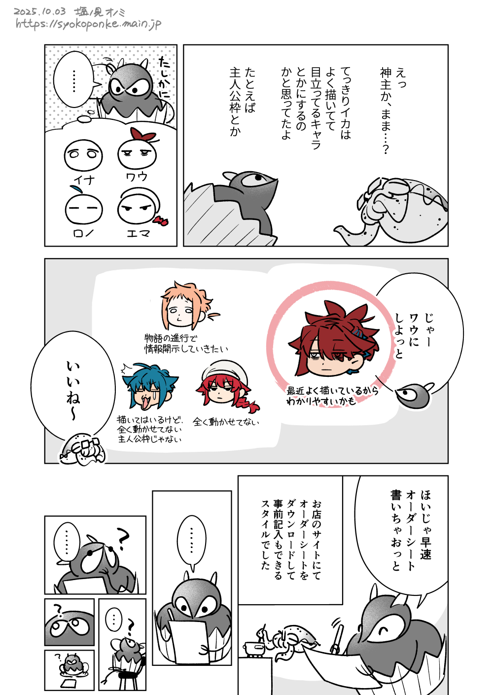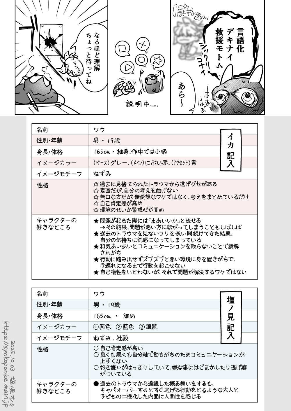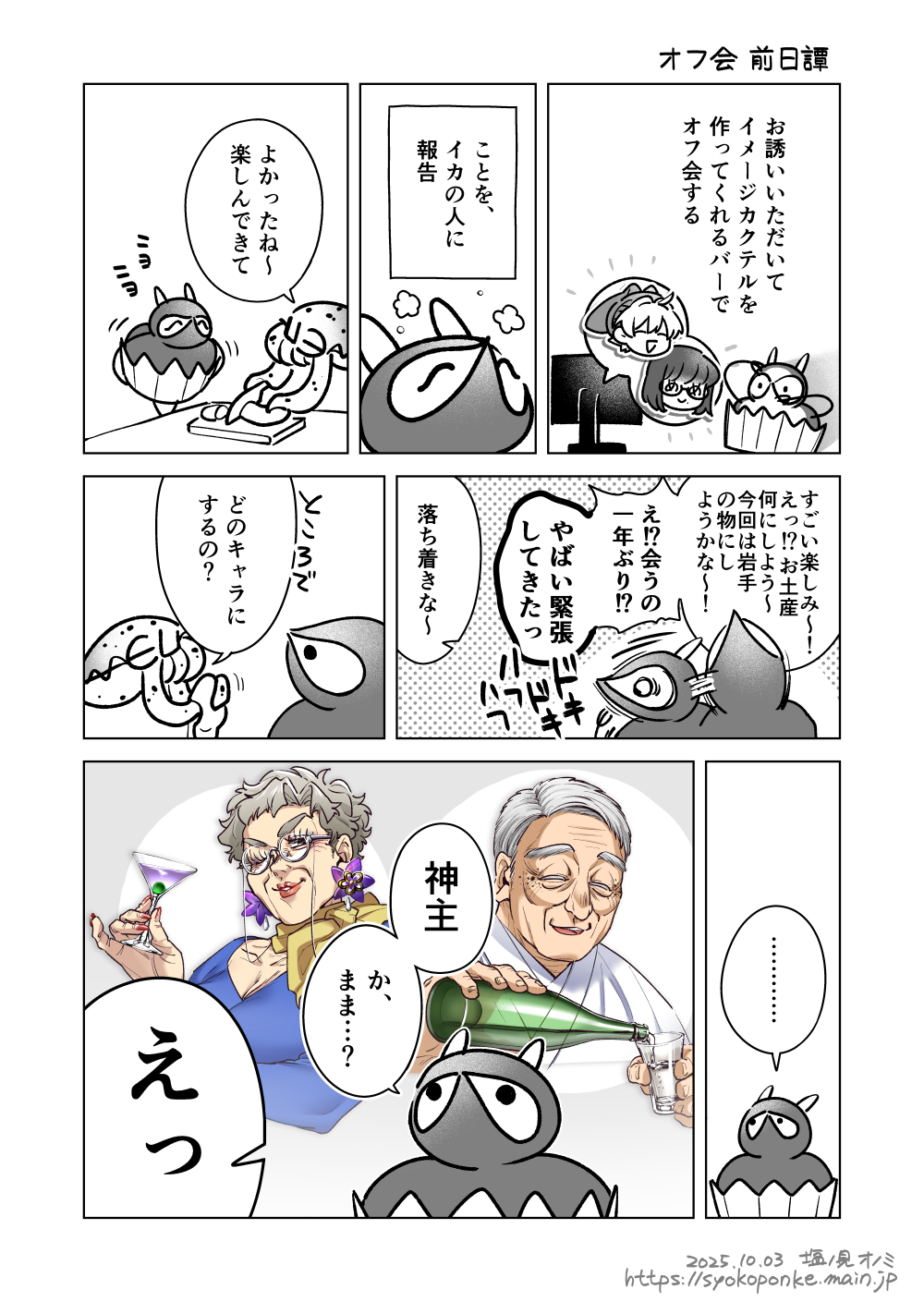 2025年10月3日 / 最終更新日時 : 2025年10月12日 塩ノ見 オノミ 日記 オフ会 前日譚 実は9月にオフ会してまして、その前日譚になります。 オフ会レポ&イメカクレポは近いうちに~。 どうでもいいことですが、個人的には神主の価値観に共感できる部分が多くて結構好きなキャラです。 早く動かしたいなあ。 オフレポ&イメカクレポ 行ってきました。