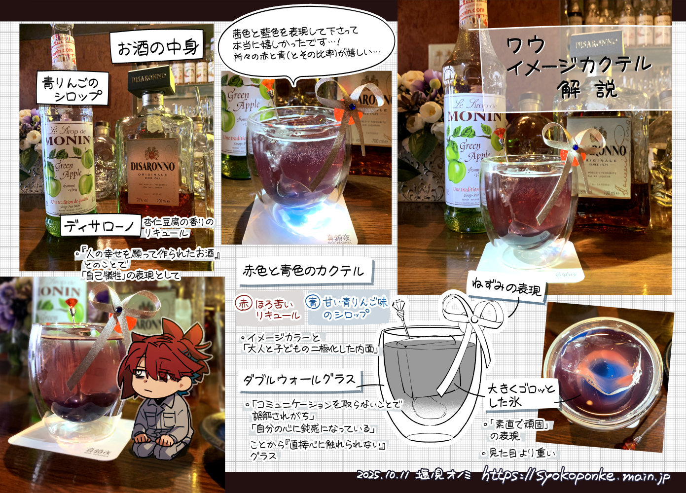 イメカク、アルコールの強さを選べるので(今回は普通にしてました)『強い』をお願いしてたらまた使われるお酒も違ったのかなあ?と比較好き魂に火が付きそう。