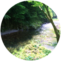 - 中心市街地と猯代山の間を分断するように細長く沢が流れています。山にバイパスが通ったことで橋が架かり、ほかの地域へのアクセスがしやすくなりました。